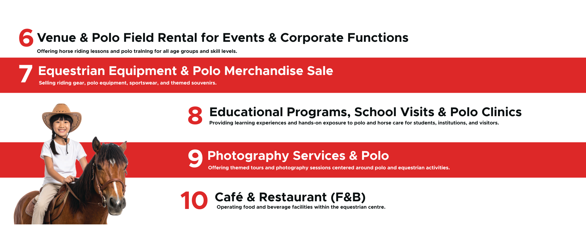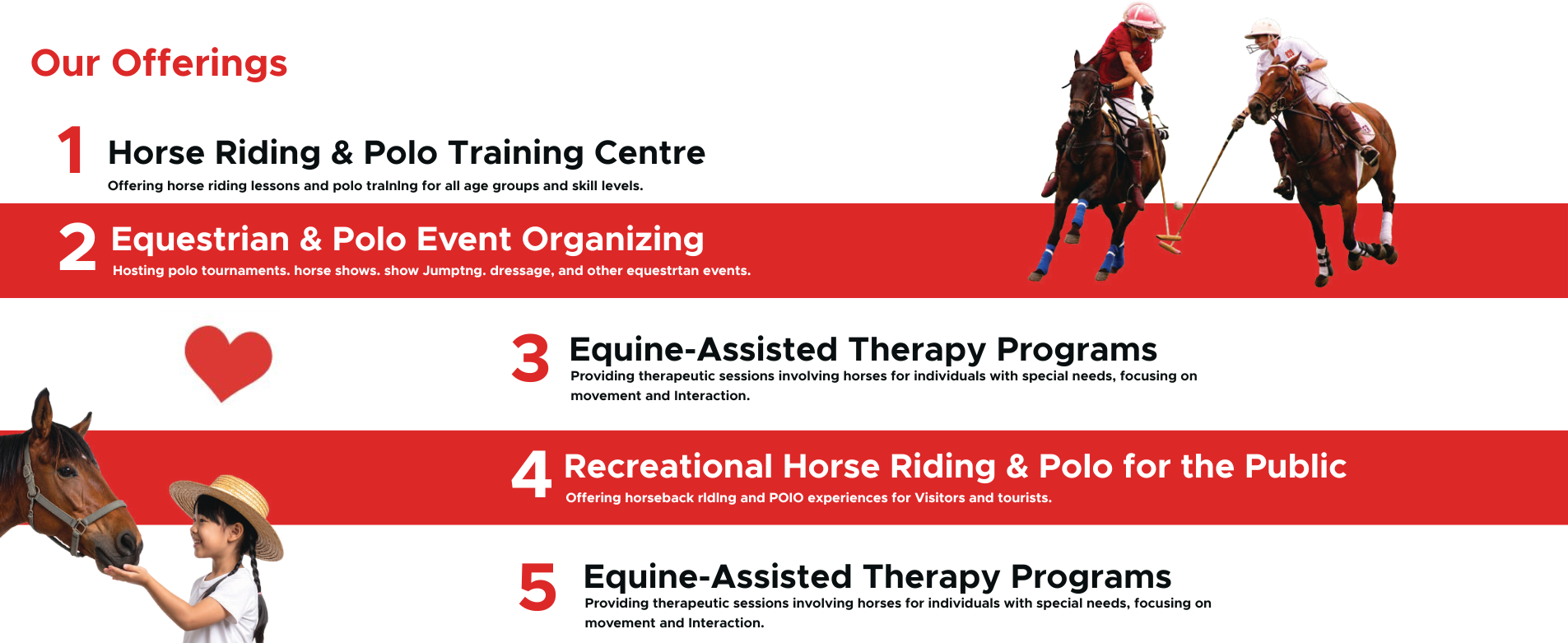 Providing learning experiences and hands-on exposure to polo and horse care for students, institutions, and visitors.